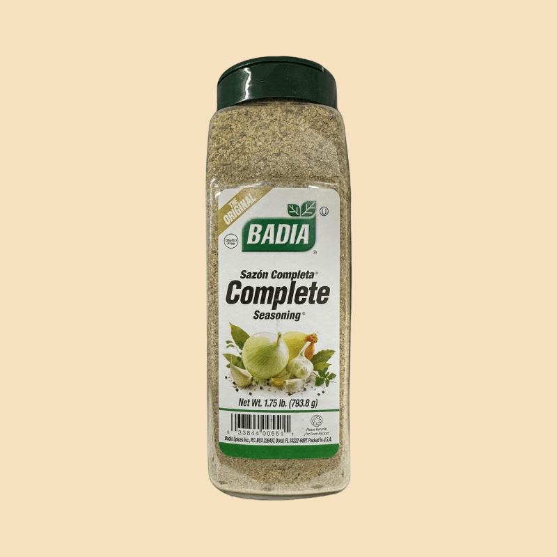 Badia Complete Seasoning – 793.8g is a flavourful mix of garlic, onion, herbs, and Latin spices that enhances the taste of nearly any savoury dish. From meats and seafood to rice, soups, and vegetables, this all-in-one blend saves time in the kitchen while delivering consistent, well-rounded flavour.