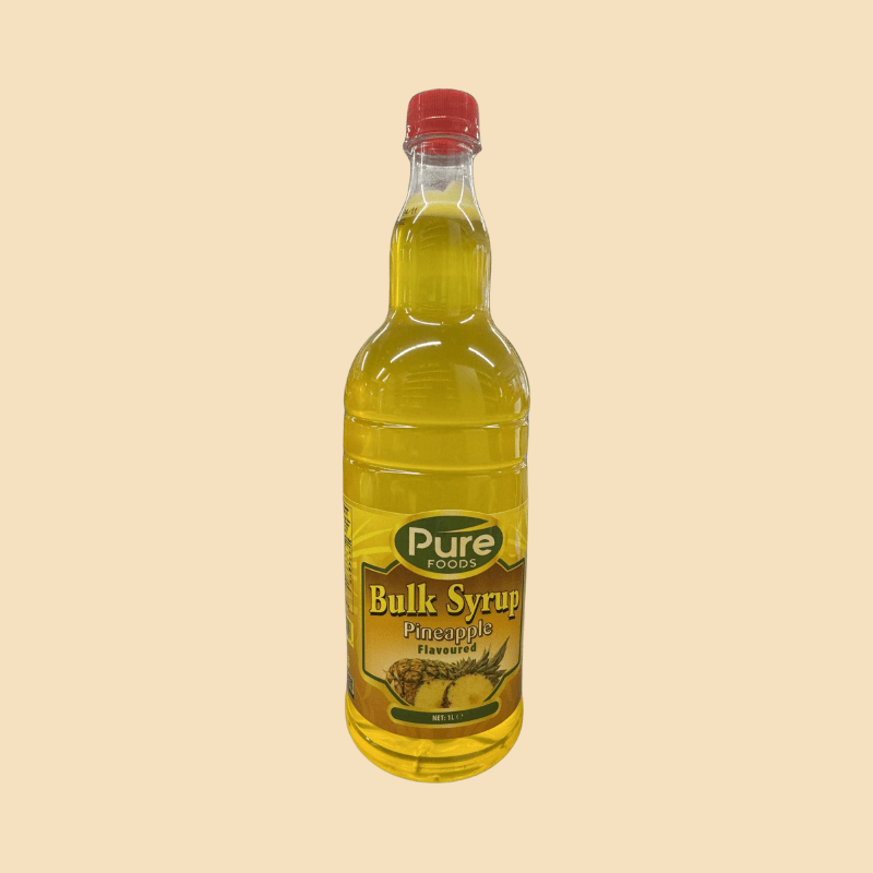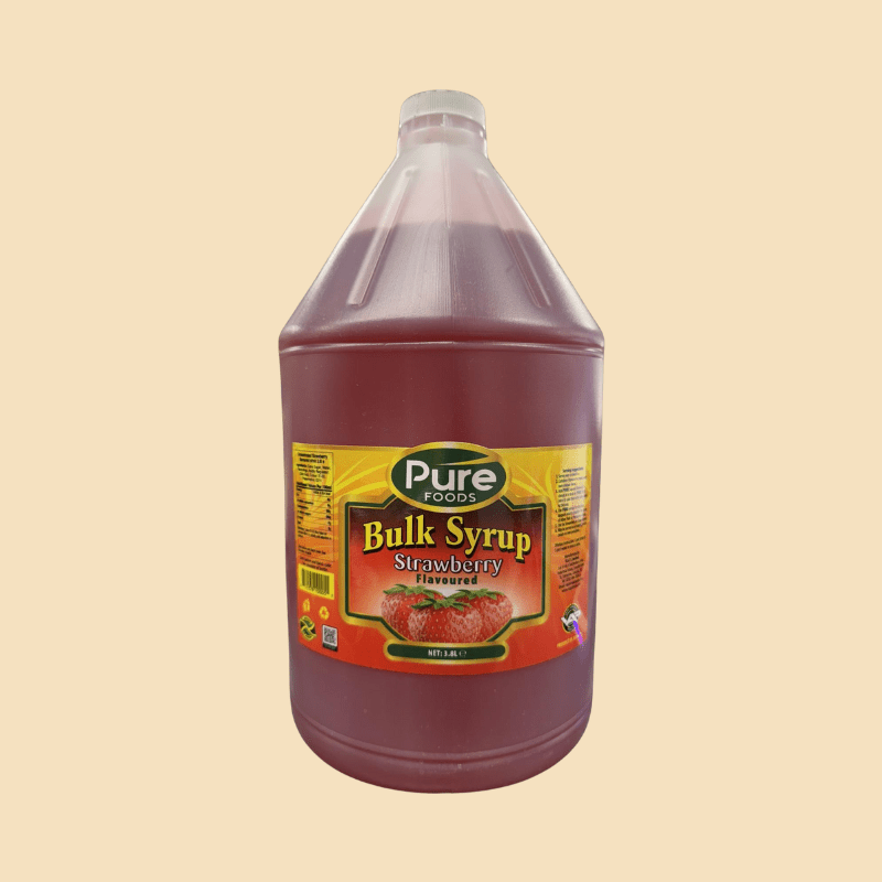 Pure Foods Syrup is a vibrant, flavourful syrup perfect for drinks, snow cones, milkshakes, and desserts. Available in bulk 3.8L and convenient 1L bottles in Strawberry, Pineapple, and Ginger flavours.