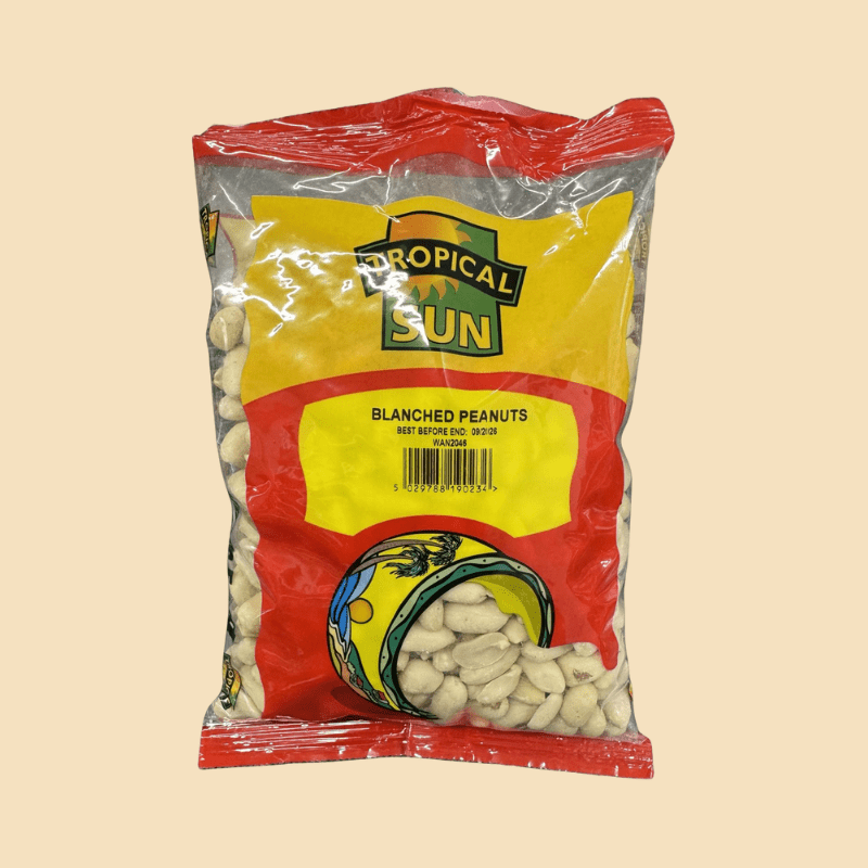 ropical Sun Blanched Peanuts – 500g are raw, skinless peanuts that have been carefully blanched to remove their outer red skins, leaving behind smooth, creamy nuts ready for use. With their mild, nutty flavour and versatile texture, they’re ideal for roasting, frying, baking, making peanut butter, or cooking traditional African and Asian dishes.