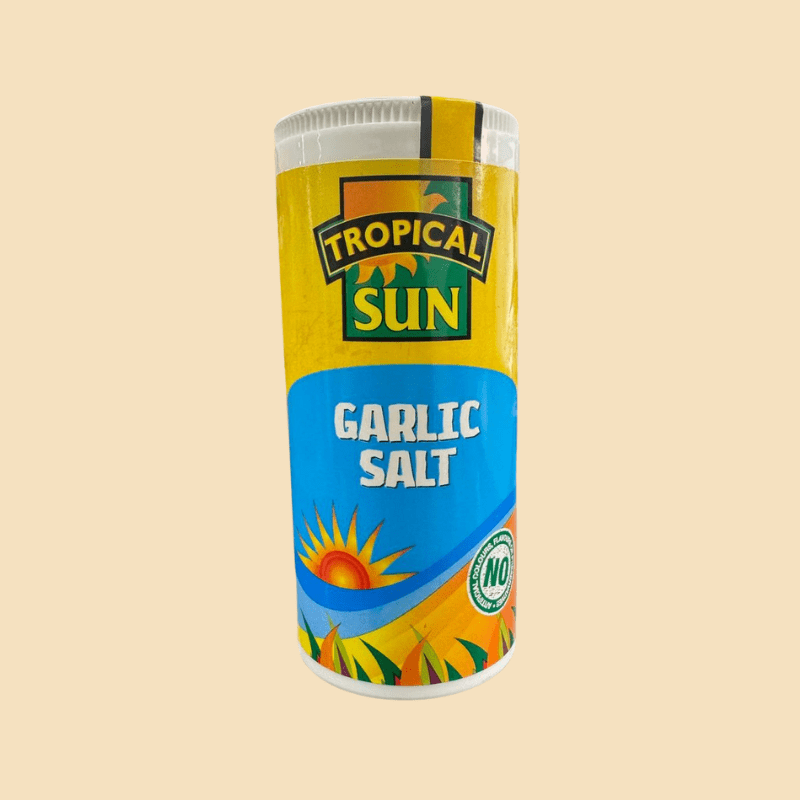 Tropical Sun Garlic Salt 100g offers a flavourful mix of garlic and salt for quick seasoning.