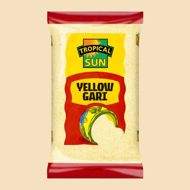 Tropical Sun Yellow Gari is a premium-quality, fermented cassava granule widely enjoyed in West African cuisine. This versatile ingredient can be used to prepare eba, a traditional side dish that pairs beautifully with soups and stews, or enjoyed as a crunchy cereal with sugar and milk. With its slightly tangy flavour and fine texture, Yellow Gari is a must-have for anyone looking to enjoy authentic African meals. Nutritious and easy to prepare, it’s an essential addition to any Afro-Caribbean kitchen.